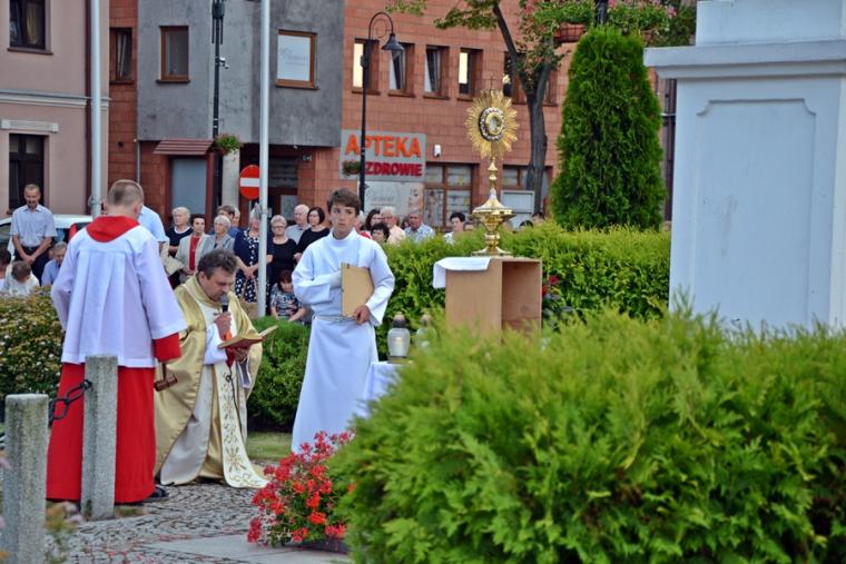 Po Mszy Świętej udaliśmy się w procesji na Rynek pod figurę Najświętszego Serca Jezusowego. Tu została odmówieniu Litania do Najświętszego Serca Pana Jezusa. Następnie ks. proboszcz odczytał Aktu poświęcenia miasta NSPJ, ten sam, który wybrzmiał na mikstackim rynku w 1936 roku. Tak jak przed laty popłynęły ku niebu słowa: „Przychodzimy więc dzisiaj, by uznać całkowite panowanie Twoje nad miastem naszem. (...). Panuj więc nad naszym rozumem przez prostotę wiary, panuj też przez swa miłość nad sercami naszemi, które niech całkowicie nią zapłoną. Chcemy je w Twej żarliwej miłości utrzymać przez częste przyjmowanie Komunii św. Racz, Boskie Serce, (...) błogosław nasze duchowne i doczesne przedsięwzięcia, rozpraszaj nasze troski, uświęcaj nasze pociechy i łagódź nasze cierpienia”. Po odnowieniu aktu ks. kan. Krzysztof udzielił błogosławieństwa Najświętszym Sakramentem na cztery strony świata.