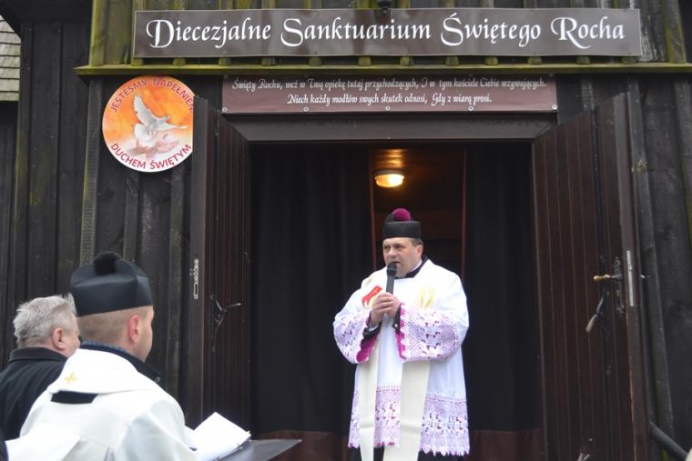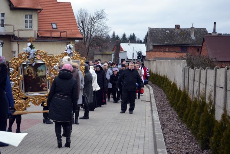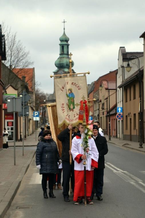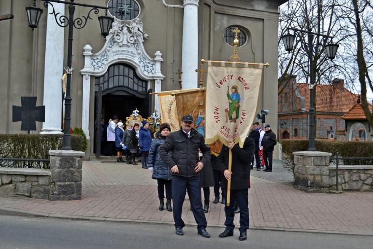 Po odprawieniu Nowenny do Miłosierdzia Bożego z krzyżem, paschałem, figurą Chrystusa zmartwychwstałego, feretronami i sztandarami, wyszliśmy na ulice naszego miasteczka. W naszą drogę do Emaus wyruszyliśmy z naszymi duszpasterzami: ks. kan. Krzysztofem Ordzinikiem, ks. Krzysztofem Lipińskim i ks. Mateuszem Puchałą. Ks. Krzysztof Lipiński niósł zapalony paschał, natomiast ks. kan. Krzysztof wraz z ks. Mateuszem prowadzili nabożeństwo Drogi Światła. Pierwsze spotkanie ze zmartwychwstałym Panem rozważaliśmy przed kościołem pw. Świętej Trójcy. Warto dodać, że wspólnota parafialna przygotowuje się do obchodów 100-lecia jego konsekracji. Ostatnie, przy Diecezjalnym Sanktuarium Świętego Rocha. Sanktuarium położone jest w centralnym punkcie cmentarza. Tu wielu uczestników procesji ma groby swoich bliskich. Dla nich przesłanie “Pan zmartwychwstał” nabiera tu szczególnego znaczenia. Daje nadzieję na spotkanie z tymi, którzy poprzedzili nas w pielgrzymce do Ojczyzny niebieskiej.