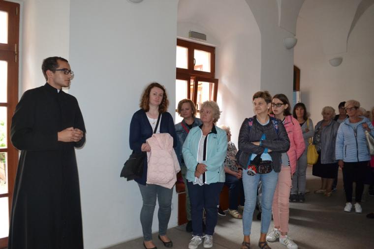 Z Lichenia udaliśmy się do Kazimierza Biskupiego. Tu nawiedziliśmy kościół pw. św. Marcina, który jest jednym z najstarszych w Wielkopolsce. Najstarsza jego część datowana jest na 1020 rok. Jest to także sanktuarium Pięciu Braci Męczenników. O ich życiu, męczeństwie, kulcie, historii opowiedział nam przewodnik. Sufit w kościele zdobią piękne polichromie. W zwieńczeniu ołtarza bocznego znajduje się obraz św. Rocha, tak bliskiego naszej wspólnocie parafialnej. Z sanktuarium Pięciu Braci Męczenników przeszliśmy do zabytkowego klasztoru Misjonarzy Świętej Rodziny. Zapoznaliśmy się z jego historią. Kleryk będący przewodnikiem opowiedział nam o miejscach posługiwania misjonarzy oraz o tym, jak wygląda dzień w klasztorze. Zwiedziliśmy także salkę z pamiątkami przywiezionymi z misji.