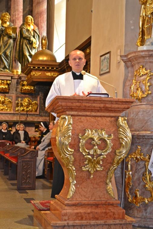 Trwa Nadzwyczajny Rok Świętego Józefa Kaliskiego. Sobota, 22 września była kolejnym dniem, kiedy Narodowe Sanktuarium Świętego Józefa nawiedziła liczna rzesza pielgrzymów z różnych zakątków kraju. Byli wśród nich m.in. pielgrzymi z Warszawy i okolic, Częstochowy, Gdańska, Zabrza, Białej Podlaski, Krakowa. Nie brakowało także grup z diecezji kaliskiej, której patronuje św. Józef. W Nadzwyczajnym Roku Świętego Józefa do sanktuarium pielgrzymują w soboty poszczególne parafie kaliskiej diecezji. W ostatnią sobotę czas swego spotkania ze św. Józefem przeżywały parafie: Sulmierzyce, Uszyce, Łąkociny, Uszyce i Mikstat. Grupa parafian mikstackich udała się do Kalisza pod opieką duchową ks. kan. Krzysztofa Ordziniaka. Dodajmy, że ks. kanonik przez dwa i pół roku posługiwał jako wikariusz w Kaliskim Sanktuarium. Tu, jak często podkreśla, obserwując ks. prałata Jacka Plotę, kustosza zdobywał doświadczenie w posługiwaniu pielgrzymom. Okazało się ono bardzo cenne i pomocne, bo dziś sam pełni posługę kustosza w Diecezjalnym Sanktuarium Świętego Rocha w Mikstacie. Wypełnił się pielgrzymami Polski Nazaret w sobotnie przedpołudnie. Na początku spotkania ks. prałat Jacek Plota, kustosz Narodowego Sanktuarium Świętego Józefa przybliżył zebranym historię powstania obrazu. Podkreślił jednocześnie, że wierni modlą się do św. Józefa w bardzo różnych sprawach mi. in. o potomstwo, o budowę domu, o pracę, o znalezienie drugiej połowy, o zdrowie. Polecają św. Józefowi wiele trudnych spraw. O godz. 11:00 odbyło się uroczyste odsłonięcie „ Cudownego Obrazu” Świętego Józefa Kaliskiego. Konferencję tematyczną o św. Józefie wygłosił ks. Szymon Rybak, który przez pięć lat posługiwał jako wikariusz w tym sanktuarium. Rozpoczynając ks. Szymon podkreślił, że nie jest przypadkiem, że się tutaj w tym Narodowym Sanktuarium Świętego Józefa znaleźliśmy. Jak podkreślił, gdy patrzymy na życie z perspektywy wiary to nic nie jest przypadkiem. Zaakcentował, że jeśli tu jesteśmy to Pan Bóg chce nam coś powiedzieć. Zwrócił uwagę, że czasami trudno nam jest przyjąć, zwłaszcza w chwilach trudnych doświadczeń, że Pan Bóg jest obecny w całym naszym życiu. Podkreślił, że św. Józef nazywany jest „milczącym Świętym”, ale mimo to może nam bardzo dużo powiedzieć. Kontynuując ks. Szymon zapytał: czego nas uczy dziś św. Józef? Zwrócił uwagę, że św. Józef jest nazywany patronem na nasze czasy, patronem Kościoła, patronem rodzin, patronem małżeństw, ludzi pracy. Zachęcał, by przyjrzeć się obrazowi, znajdującemu się w Kaplicy Cudownego Obrazu. Zaznaczył, że chciałby zatrzymać się na chwilę na sprawie, którą spychamy na ostatni plan - na śmierci. Przypomniał, że Święty Józef jest patronem dobrej śmierci. Wyjaśnił co to określenie dobra śmierć oznacza. Wskazał na trzy jej wyznaczniki: zasnąć spokojnie i nie cierpieć, odejść w gronie najbliższych i wreszcie odejść będąc pojednanym z Bogiem i Kościołem. Zachęcał, by nie uciekać od tematu śmierci, myślenia o niej, bo życie każdego kiedyś się skończy. W dalszej części konferencji ks. Szymon zwrócił uwagę na kształt obraz. Podkreślił, że ma on charakterystyczne ścięcia do góry, dzięki nim jego kształt kojarzy się z domem. Zebrani w Narodowym Sanktuarium św. Józefa przybyli tu z konkretnych domów-dodał. Pytał, co świadczy o wielkości naszych domów w czasach współczesnych. Zaznaczył, że o wielkości domu nie świadczą zgromadzone w nim dobra materialne, ale panująca atmosfera, więzi, relacje łączące osoby w nim mieszkające. Dalej ks. Szymon pytał: „ Z jakiego domu przyjechałeś? Czego ci w życiu brakuje? Może właśnie tego, normalnej atmosfery, atmosfery miłości i szacunku. Dzisiaj św. Józef chce być tym, który chce temu wszystkiemu zaradzać”. Ponadto kapłan zwrócił uwagę, że patrząc na obraz w linii pionowej widzimy Trójcę Przenajświętszą: Boga Ojca, Syna Bożego i Ducha Świętego, natomiast w linii poziomej trójcę ziemską Boga- Człowieka Jezusa, Józefa i Maryję. Zwrócił uwagę, że twarz Boga Ojca i św. Józefa jest taka sama. Wyjaśnił, że głową Świętej Rodziny był św. Józef. To on jako mąż i jako ojciec zaradzał problemom, uczył modlitwy Jezusa. Kontynuując podkreślał, że św. Józef jest tym, który może zaradzić naszym potrzebom, możemy do niego przychodzić ze wszystkim, bo on chce byśmy zaprosili go do tego wszystkiego co dla nas trudne. Kolejną kwestią na którą, jak podkreślił głoszący konferencję, warto zwrócić uwagę patrząc na obraz św. Józefa Kaliskiego jest rodzina. Podkreślał, że źródło tego z czym przychodzą, przyjeżdżają pielgrzymi tkwi w rodzinie. Zachęcał, by patrząc na obraz dostrzec, że dłonie Jezusa i Maryi splecione są w Jezusie i dodał, że siłą ich małżeństwa i rodziny jest Bóg. Ks. Szymon postawił zebranym pytanie: gdzie w twoim domu jest Bóg?W dalszej części konferencji kapłan zwrócił uwagę na liczne wota znajdujące się w sanktuarium i opowiedział dwa świadectwa ukazujące skuteczność orędownictwa św. Józefa. Kończąc ks. Szymon podkreślił, że nie ma takiej sytuacji w naszym życiu, której Bóg nie może zmienić. Podkreślił, kolejny raz, że nie jest przypadkiem, że się tu dzisiaj znaleźliśmy i prosił „Niech Święty Józef będzie dla nas dzisiaj opiekunem. Amen”.
