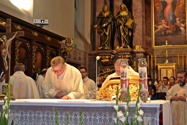 Po konferencji w Kaplicy Cudownego Obrazu zostało odprawione nabożeństwo do św. Józefa, które poprowadził ks. Michał Świgoniak. Ku niebu popłynęły słowa powitania św. Józefa, podziękowania za otrzymane łaski, ale także prośby, które w sobotnie przedpołudnie zostały złożone w sanktuarium. Po nich odmówiona została Litania do św. Józefa. Gdy zegar na wieży wybił godzinę dwunastą odśpiewany został Anioł Pański. Po modlitwie ks. prałat Jacek Plota, skierował słowa powitania do pielgrzymów. Najważniejszym punktem sobotniego spotkania ze Świętym Józefem była Eucharystia. Przewodniczył jej ks. prałat Jacek Plota, kustosz tego wyjątkowego miejsca, a współcelebransami kapłani przybyli z wiernymi ze swoich parafii. Homilię podczas Mszy św. wygłosił ks. Szymon Rybak. Rozpoczynając podkreślił, że nie jest przypadkiem, że znaleźliśmy się w Narodowym Sanktuarium Świętego Józefa właśnie w tym dniu. Zachęcał do tego, by poszukać samodzielnie odpowiedzi na pytania, po co się tutaj znaleźliśmy? Co św. Józef chce powiedzieć każdemu z nas? Nawiązując do słów Ewangelii (Łk8,4-15) podkreślił, że Pan Bóg jest tym, który sieje Słowo, niezależnie od tego, gdzie ono padnie, mając nadzieję, że wyda ono plon. Zaznaczył, że patrząc na życie św. Józefa widzimy, że jest ono żyzną glebą. Następnie ks. Szymon przywołał historię którą kiedyś usłyszał, a dotyczyła ona pytania, jakie konająca matka postawiła synowi kapłanowi: Czy ty naprawdę, żyjesz z Jezusem? Matka podkreśliła, że nie pyta syna kim jest, jakie ma znajomości, jaką ma władzę, ale czy naprawdę żyje z Jezusem. Kontynuując kaznodzieja podkreślił, że nie interesują go znajomości, pozycja społeczna, status materialny, decyzje, które mają do podjęcia zebrani w sanktuarium, ale interesuje go to czy naprawdę żyją z Jezusem. Jednocześnie podkreślił, że nie chodzi tutaj o deklaracje, ale o autentyczne życie wiarą. Ks. Szymon zachęcał, by szukać odpowiedzi na pytanie: kim jest dla nas Jezus, ale nie w deklaracji, tylko w konkretnych sytuacjach życiowych, podczas spotkań z różnymi ludźmi, w podejmowanych decyzjach. Podkreślał, że patrząc na św. Józefa widzimy, że nie składał Bogu wielkich deklaracji, ale cały czas żył słowem Bożym, mówił Bogu o swoich lękach.