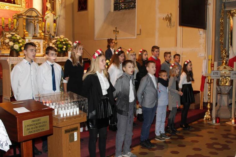 Podczas każdej Mszy świętej było śpiewane dziękczynne Te Deum, natomiast o godzinie 12:00 biciem dzwonów upamiętniono ten dzień. Po uroczystej Mszy świętej w intencji Ojczyzny, o godzinie 15:00, którą odprawił ks. kanonik Łukasz Żurawski, kustosz Sanktuarium Matki Bożej Pocieszenia w Lutogniewie, zarówno parafianie jak i przybyli goście mogli obejrzeć montaż słowno - muzyczny przygotowany przez uczniów Szkoły Podstawowej im. Jana Brzechwy w Lutogniewie.