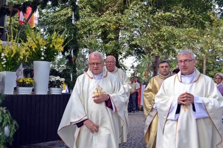 16 sierpnia w Diecezjalnym Sanktuarium Świętego Rocha w Mikstacie odbyły się uroczystości odpustowe połączone z obrzędem błogosławieństwa zwierząt. Poprzedza go sprawowana przy ołtarzu polowym o godz.8:00 Msza św. w intencji gospodarzy oraz o Boże błogosławieństwo w pracy i inwentarzu. To właśnie wiara sprawia, że od pokoleń w dniu wspomnienia św. Rocha, 16 sierpnia Cmentarne Wzgórze wypełnione jest wiernymi. Mszy świętej koncelebrowanej przewodniczył kustosz sanktuarium ks. kan. Krzysztof Ordziniak. Współcelebransami byli ks. kan. Jerzy Rasiak, ks. kan. Andrzej Grabański i ks. Ryszard Zieliński. Podczas tej Eucharystii wybrzmiały słowa błogosławieństw. W homilii ks. kustosz podkreślił, że słowa „ błogosławieni miłosierni, albowiem oni miłosierdzia dostąpią” stanowią w pewnym sensie motto odpustowej liturgii. Podkreślił, że żył nim patron naszego sanktuarium. Zwrócił uwagę, że Kościół wspominając postacie świętych i błogosławionych daje nam wzory do naśladowania. Kontynuując ks. kan. Krzysztof Ordziniak przypomniał postać św. Rocha akcentując jego postawę miłosierdzia. Przypomniał, że podczas nowenny przygotowującej nas do uroczystości odpustowych pochylaliśmy się dzięki słowu głoszonemu przez kapłanów mikstackiego dekanatu właśnie nad błogosławieństwami. Ks. kustosz podkreślił, że uroczystość odpustowa ukazuje nam perspektywę życia na przykładzie św. Rocha, motywując do życia godnego ucznia Chrystusa. Kończąc homili zachęcał: „Bądźmy ludźmi wspaniałomyślnymi, otwartymi, nie zatrzymującymi się na tym co tylko nam może służyć, co jest nam wygodne”. We mszy św. uczestniczyło dwóch chłopców przebranych za św. Rocha. Specyficzna była atmosfera tej mszy świętej. Do uszu osób w niej uczestniczących dochodziło z oddali szczekanie psów, rżenie koni. Był to znak, że już przed bramą prowadzącą do sanktuarium gromadzą się właściciele ze swoimi zwierzątkami. Nikomu chyba w tym dniu nie przeszkadzały te odgłosy, nikt nie narzekał, że trudno się było skupić podczas Eucharystii. Święty Roch przecież jest opiekunem zwierząt. Po zakończonej Eucharystii odbył się obrzęd błogosławieństwa zwierząt. Przewodniczył mu ks. biskup Łukasz Buzun.Wielka jest siła wiary mikstackich parafian, ale i tradycji. Ma ona ponad trzysta lat…