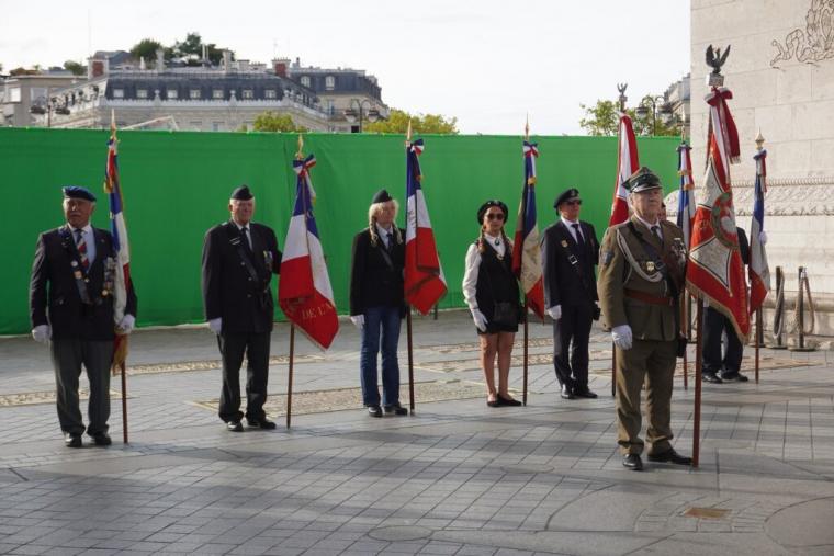 Wieczorem pod Łukiem Triumfalnym przy Grobie Nieznanego Żołnierza odbyła się druga część uroczystości. To ceremonia rozpalania ognia (la Ravivage de la Flamme). Pod Łukiem organizacje kombatanckie i polonijne uczestniczyły w ceremonii ze sztandarami i złożyły kwiaty. Na płycie Grobu znajduje się napis w języku francuskim, który po polsku znaczy: „Tu spoczywa żołnierz francuski, który poległ za ojczyznę”. Jest to miejsce upamiętniające bezimiennych żołnierzy poległych w walkach I wojny światowej (1914–1918).