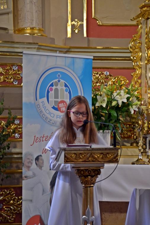 W procesji z darami dzieci przyniosły chleb wodę i wino oraz hostie. Po zakończeniu Mszy Świętej został wystawiony Najświętszy Sakrament i odmówiona Litania do Trójcy Przenajświętszej, a następnie wyruszyliśmy z procesją wokoło kościoła. Po błogosławieństwie udzielonym Najświętszym Sakramentem licznie zebranym w mikstackim wieczerniku wiernym wybrzmiała pieśń „Boże coś Polskę…”.