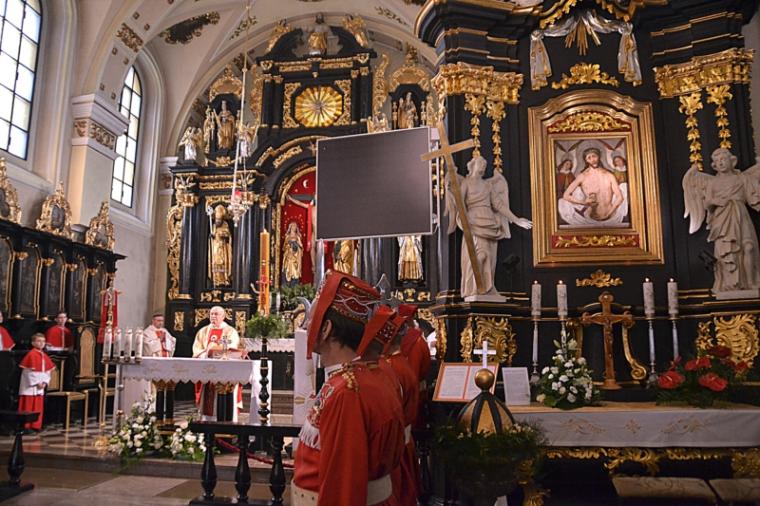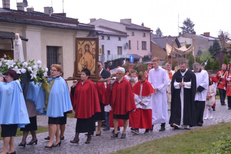 Jezu, dzisiaj twoje święto gdzie od wieków w Wieruszowie jesteś wielbiony w swoim Pięciorańskim obrazie - prosimy Cię mniej miłosierdzie dla nas i dla całego Świata.Uroczystości odpustowe w wieruszowskim sanktuarium ubogacając swoim śpiewem chór Lira oraz pełnili honorową wartę halabardziści ubrani swój galowy strój. Były obecne relikwie, które parafia posiada - św.Jana Pawła II i św.Faustyny Kowalskiej Apostołów Miłosierdzia.