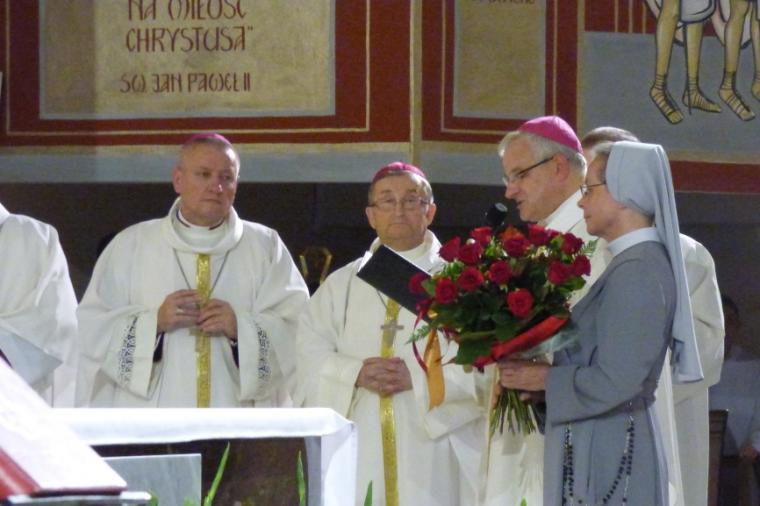 Jubilat odebrał także życzenia od duchowieństwa i zgromadzeń zakonnych, które złożył legnicki biskup pomocniczy Marek Mendyk oraz magdalenka s. Wiesława Kopij CSMM, a ze strony osób świeckich przedstawiciele Akcji Katolickiej - państwo Jaśkowscy.