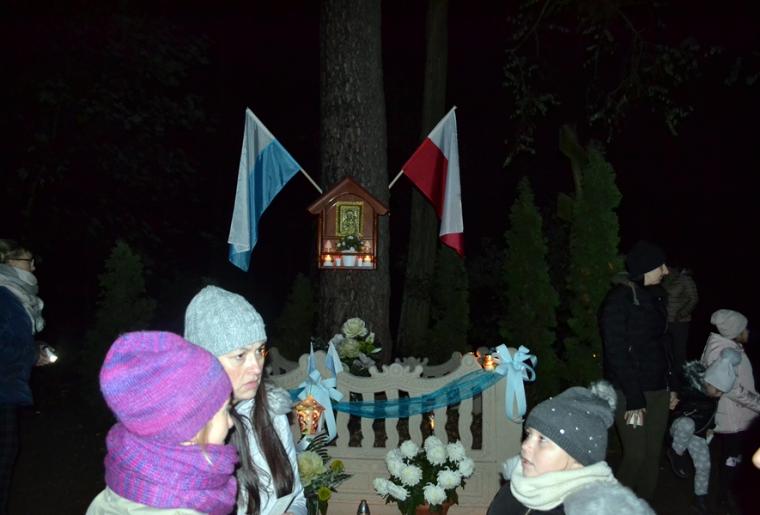 Ksiądz kan. podkreślił, że nie byłoby nas tutaj gdyby nie wiara naszych przodków, którzy ustawili tę kapliczkę i przekazali nam wiary. Jesteśmy im winni wdzięczność i modlitewną pamięć. Po specjalnej modlitwie ks. proboszcz dokonał poświęcenia odnowionej kapliczki.