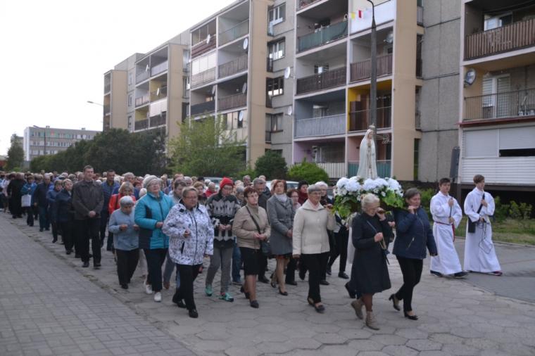 Licznie zgromadzeni wierni wyruszyli z figurą Pani Fatimskiej. Nabożeństwu z procesją różańcową przewodniczył ks. prał Henryk Orszulak, proboszcz parafii. Na zakończenie nabożeństwa wszyscy mogli uczcić relikwie pastuszków fatimskich. „Są na ziemi tej takie miejsca, do których chętnie się wraca, gdzie Matka czeka nas najlepsza i pokój duszy przywraca. To właśnie tam w Fatimie, u Maryi, to właśnie tam tak wiele dzieje się. Ileż tam łaski i miłości matczynej, to właśnie tam powracać ciągle chcę”.