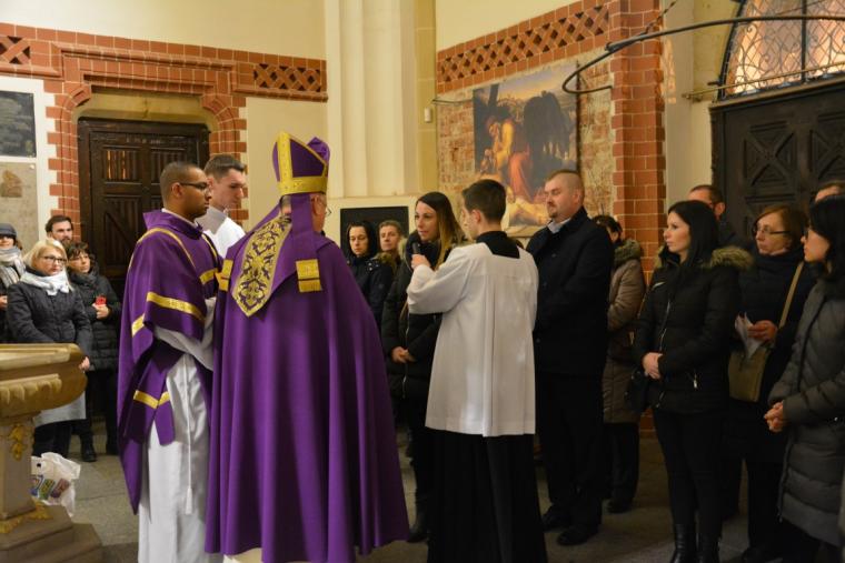 Modlitwie, podczas której przyjęto ich do wspólnoty Kościoła, przewodniczył biskup legnicki Zbigniew Kiernikowski. Obrzęd przyjęcia rozpoczął się w przedsionku katedry. Tam kandydaci do katechumenatu, poprzez podanie swojego imienia, przedstawili się całej wspólnocie Kościoła oraz publicznie poprosili Kościół Boży o wiarę, która daje życie. Następnie Ksiądz Biskup, a po nim poręczyciele kandydatów, uczynił znak krzyża na czołach kandydatów i uroczyście wprowadził ich do świątyni.