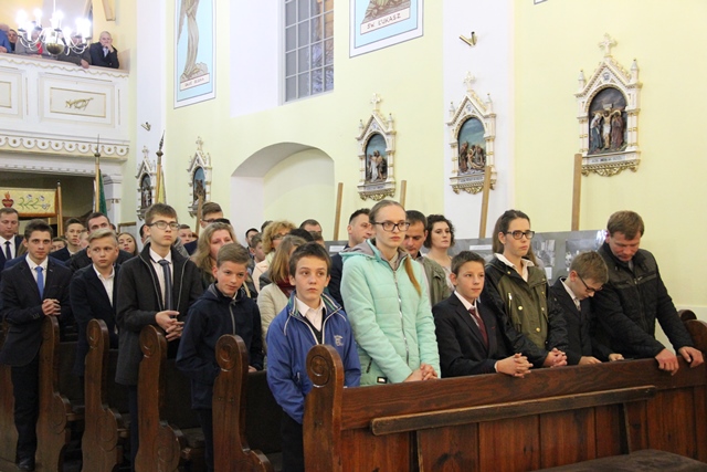 Relikwie bł. ks. Jerzego Popiełuszki zostały przyniesione w procesji z darami przez przedstawicieli rodziny zmarłego ks. prof. Antoniego Lewka.