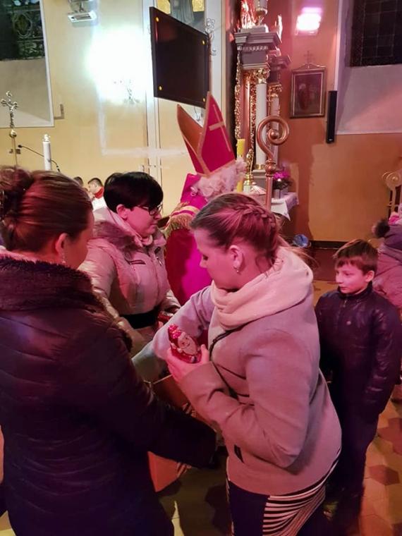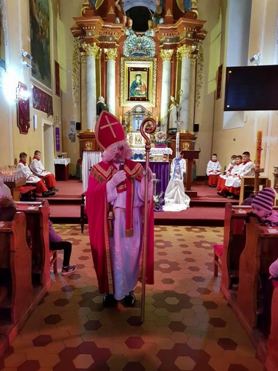 W ten adwentowy czas wpisuje się także wspomnienie św. Mikołaja Biskupa. Kochają tego Świętego i modlą się chętnie do niego nie tylko dzieci, ale dorośli. Zasłynął bowiem z wielkiej szczodrobliwości wobec potrzebujących. Pamiętał także o dzieciach z Lutogniewskiej parafii. Warto tu dodać, że  sanktuarium pojawił się nie jakiś krasnal przebrany w czerwony strój, rozdający upominki, ale właśnie św. Mikołaj Biskup w mitrze i z pastorałem w ręku. Porozmawiał z dziećmi, dowiedział się czy są grzeczne. Potwierdziła to także ks.proboszcz Łukasz Żurawski. Jak się można niejednokrotnie przekonać dzieci z Lutogniewskiej parafii chętnie uczęszczają do kościoła  uczestnicząc w  Mszach Świętych i różnych nabożeństwach otrzymały od Świętego Mikołaja słodkie upominki. Spotkanie ze św. Biskupem Myry upłynęło w miłej i radosnej atmosferze. A potem św. Mikołaj wyruszył w dalszą drogę, bo wiele dzieci w tym dniu czeka na niego.