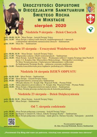 Mikstat: W dniach 15-16 sierpnia w Mikstacie - mieście szczególnego kultu św. Rocha odbyły się uroczystości odpustowe. Święty Roch jest m.in. patronem od epidemii, której w tym właśnie czasie doświadczali jego mieszkańcy.