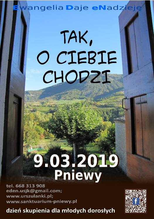 Serdecznie zapraszamy młodych dorosłych (w wieku 18-30 lat) 9 marca 2019 roku (w sobotę) na kolejny dzień skupienia do Pniew, do Sanktuarium św. Urszuli Ledóchowskiej.