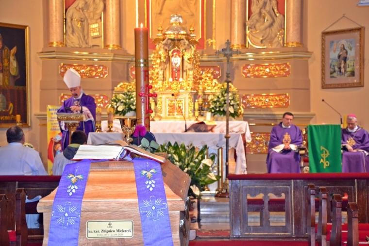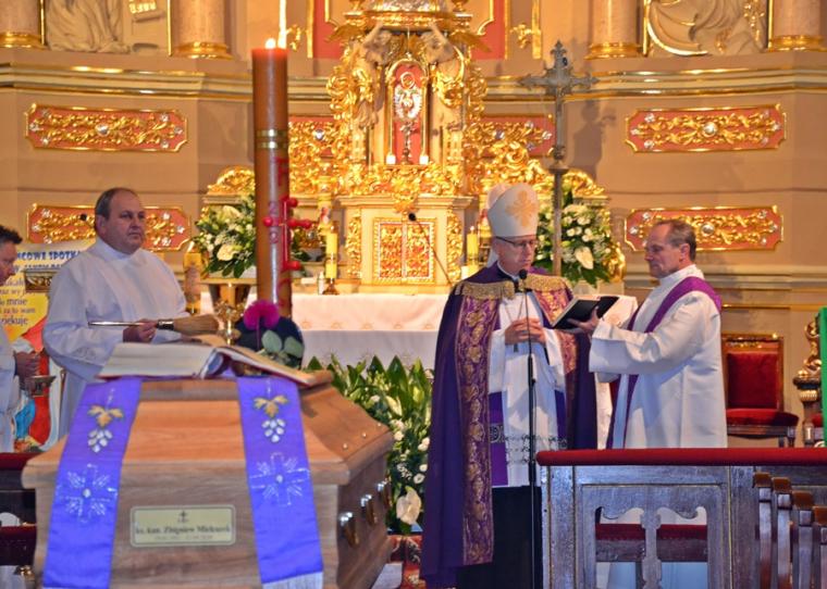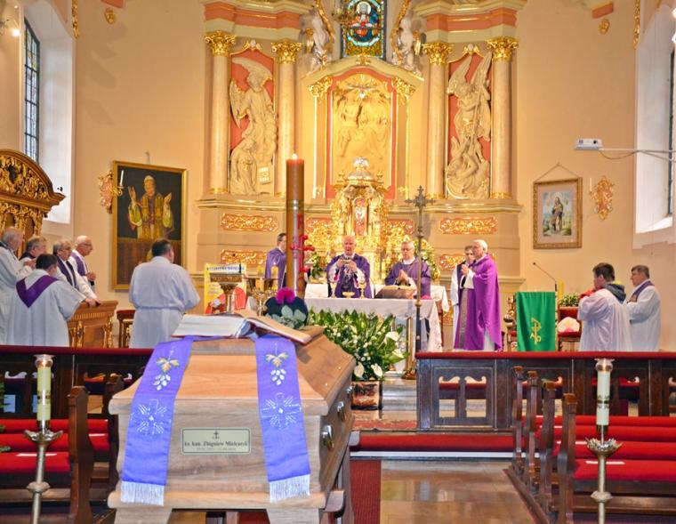 21 września, w 43 roku kapłaństwa odszedł do Domu Ojca w Recklinghausen ks. kan. Zbigniew Mielcarek syn ziemi mikstackiej. Ksiądz kanonik przez blisko trzydzieści lat posługiwał w Polskiej Misji Katolickiej w Niemczech. Uroczystości pogrzebowe śp. ks. kanonika Zbigniewa odbyły się 2 października, w święto Aniołów Stróżów w Mikstacie, parafii z której pochodził. By pożegnać zasłużonego w posłudze w Bożej winnicy Ks. Zbigniewa przybyli ks. biskup senior diecezji świdnickiej Ignacy Dec oraz delegat Archidiecezji Wrocławskiej ks. bp Andrzej Siemieniewski. Obecni byli także kapłani z Niemiec, a wśród nich ks. Rafał Kowalczyk proboszcz parafii w Recklinghausen, wraz z parafianami, koledzy kursowi, kapłani z różnych stron Polski, współbraci kapłani wywodzący się z mikstackiej parafii i jej wierni, przyjaciele i znajomi, którzy chcieli ofiarować zmarłemu dar modlitwy i towarzyszyć mu w drodze na miejsce wiecznego spoczynku. Słowa powitania do wszystkich przybyłych na uroczystości pogrzebowe skierował ks. kan. Krzysztof Ordziniak, proboszcz mikstackiej parafii. Mszy św. przewodniczył ks. biskup Ignacy Dec. Rozpoczynając Eucharystię główny celebrans zaznaczył, że sprawowana jest ona w dwóch intencjach: po pierwsze jest dziękczynieniem za wszelkie dobro przekazane przez ks. Zbigniewa ludziom, za dar jego życia i powołania. Druga intencja miała charakter błagalny o wybielenie cieni życia śp. ks. Zbigniewa i wyproszenie mu miłosierdzia Bożego. Homilię wygłosił ks. bp Ignacy. Na początku złożył kondolencje rodzinie zmarłego kapłana i wszystkim tym, których jego śmierć napełniła smutkiem. Ksiądz biskup podkreślił, że na nagrobkach, czy encyklopediach podaje się datę narodzin i śmierci. Zwrócił uwagę, że inna towarzyszy tym wydarzeniom inny klimat. Narodzinom, atmosfera radości przede wszystkim najbliższej rodziny, śmierci i pogrzebowi smutek wielu osób, nie tylko rodziny, ale i tych, którzy spotkali na swej drodze zmarłego. Podkreślił, że w takiej atmosferze, w otoczeniu wielu osób zgromadzonych w mikstackim kościele odbywa się pożegnanie zmarłego Kapłana, który w Mikstacie spędził lata dzieciństwa i młodości. Stąd, jak zaznaczył hierarcha „wyfrunął w świat i oto wraca w swoim zmarłym ciele, które kryje ta trumna, by tu w rodzinnej ziemi spocząć i oczekiwać na końcowe zmartwychwstanie”. Ks. biskup zaakcentował, że śmierć ks. Zbigniewa napełniła wiele osób smutkiem i żalem. Pocieszeniem dla nas są Słowo Boże. Podkreślił, że Bóg daje nam nadzieję, że śmierć nie jest końcem, ale zmianą życia ziemskiego na życie wieczne. Słowa św. Pawła sprawiają, że jak powiedział celebrans „ odżywa w nas wiara, że śp. ksiądz Zbigniew został przeprowadzony z ziemi do niebieskiego mieszkania”. Nawiązując do słów Ewangelii ( J 14,1-3) zaznaczył, że wypełniły się one w życiu ks. Zbigniewa. Bóg przyszedł po swego kapłana i zabrał go do siebie. Kaznodzieja zachęcał do dziękczynienia za życie kapłana, ale i do błagania Boga o darowanie grzechów przez niego popełnionych. Podkreślił, że wszyscy grzeszymy i potrzebujemy Bożego miłosierdzia. Zaakcentował, że śp. ks. Zbigniew nie może już sobie pomóc, ale możemy uczynić to my, żyjący ofiarowując mu swoją modlitwę. Zwrócił uwagę, że modlitwa jest wyrazem wdzięczności i miłości do zmarłego. W dalszej części homilii ks. biskup Ignacy przypomniał najważniejsze wydarzenia z życia ks. Zbigniewa, zaznaczając, że z domu rodzinnego wyniósł najpiękniejsze wiano, wiarę i umiłowanie Boga, modlitwy, miłość i życzliwość do ludzi, gotowość do niesienia im pomocy. Podkreślił, że to właśnie tu w Mikstacie zrodziło się powołanie kapłańskie, do którego przygotowywał się w Arcybiskupim Seminarium Duchownym we Wrocławiu w latach 1971-1977. Przypomniał, że przyszły kapłan mając zaledwie cztery lata został ministrantem, a lata jego formacji w seminarium przypadł na trudny czas, kiedy to Bóg powoływał do siebie trzech kolejnych biskupów wrocławskich. Kontynuując hierarcha przywołał dzień 21maja 1977 roku, kiedy ks. Zbigniew w katedrze wrocławskiej z rąk abpa Henryka Gulbinowicza przyjął święcenia kapłańskie. Przypomniał, że miejscem pierwszej posługi kapłańskiej ks. Zbigniewa był Strzegom. Tu posługiwał przez 5 lat. Następnie został skierowany do parafii pw. Świętego Jerzego w Wrocławiu Brochowie, gdzie pełnił posługę przez sześć lat. W 1988 roku podjął posługę w Polskiej Misji Katolickiej, początkowo w Munster, a następnie w Recklinghausen. Wyjechał, by jak zaznaczył kaznodzieja Polacy przebywający w Niemczech mieli kapłana, który będzie dla nich po polsku sprawował Eucharystię i sakramenty. Podkreślił, że posługa kapłańska ks. Zbigniewa w Polskiej Misji Katolickiej w Niemczech trwała trzydzieści lat. Tam głosił Słowo Boże, przypominał o przykazaniach Bożych, które zostało nam dane po to, byśmy godnie przeżyli życie i tworzyli lepszy świat. Kaznodzieja podkreślił, że ze sprawowania Eucharystii i posługi sakramentalnej czerpał siły do dźwigania krzyży, których nie brakowało jego życiu. Tę mocą napełniał zmarły kapłan tych, którym służył. Kontynuując hierarcha podkreślił zaangażowanie ks. Zbigniewa w jego posługę chorym, biednym, zagubionym. Był pasterzem zatroskanym o swoje owieczki, a tym które się zagubiły pomagał odnajdywać drogę do Boga. Przypomniał także jubileusz 40-lecia kapłaństwa śp. ks. kanonika Zbigniewa w Recklinghausen, w którym uczestniczył i wygłosił homilię. Ks. biskup podkreślił, że podczas tej liturgii dziękujemy Bogu za kapłana, który kochał Boga i ludzi. Podziękował ks. Zbigniewowi za jego uśmiech, życzliwość, rozśpiewanie, otwartość. Kończąc powiedział: „Księże Zbigniewie, wróciłeś z dalekiego 