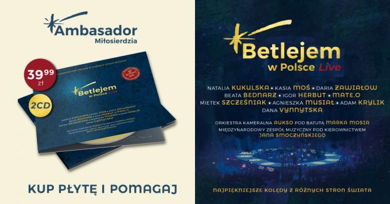 Betlejem w Polsce to, też wspólny opłatek i wspólne kolędowanie (artyści i publiczność). Jak co roku dochód z trasy „Betlejem w Polsce”, jest przeznaczony na cel charytatywny - pomoc dla osób potrzebujących. Uczestnicząc w jednym z koncertów, dzielimy się dobrem z drugim człowiekiem. Kup bilet – zostań Ambasadorem Miłosierdzia!