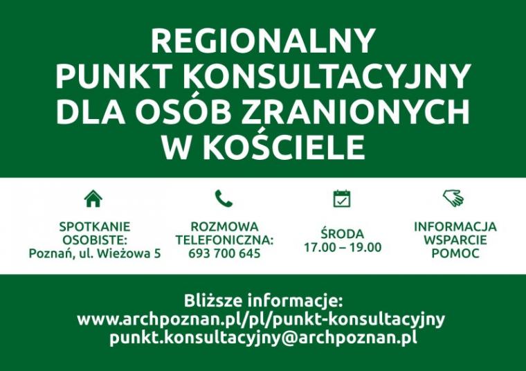 Punkt konsultacyjny przy ul. Wieżowej 5 w Poznaniu oferuje pomoc psychologiczną, prawną i duszpasterską. To miejsce pierwszego kontaktu osób skrzywdzonych z przedstawicielami Kościoła, którzy pragną im pomóc i towarzyszyć. "Odpowiednio przeszkoleni konsultanci, głównie świeccy, będą gotowi przyjąć i z szacunkiem wysłuchać każdą osobę, udzielić odpowiedniej informacji i wsparcia w podjęciu adekwatnych dla danej sytuacji działań. Będą też udzielali pomocy w nawiązaniu kontaktu z prawnikiem, psychologiem lub duszpasterzem, w zależności od potrzeb i oczekiwań" – czytamy na stronie Archidiecezji Poznańskiej, która powołała ośrodek przy współudziale Archidiecezji Gnieźnieńskiej i merytorycznym wsparciu Centrum Ochrony Dziecka.