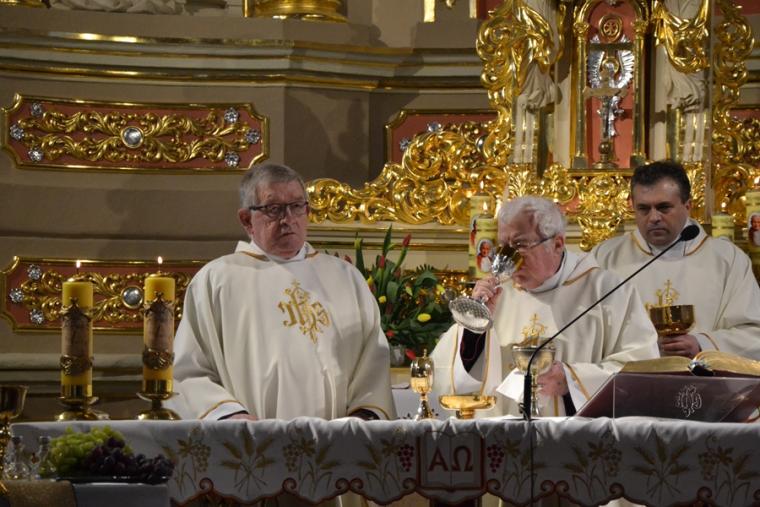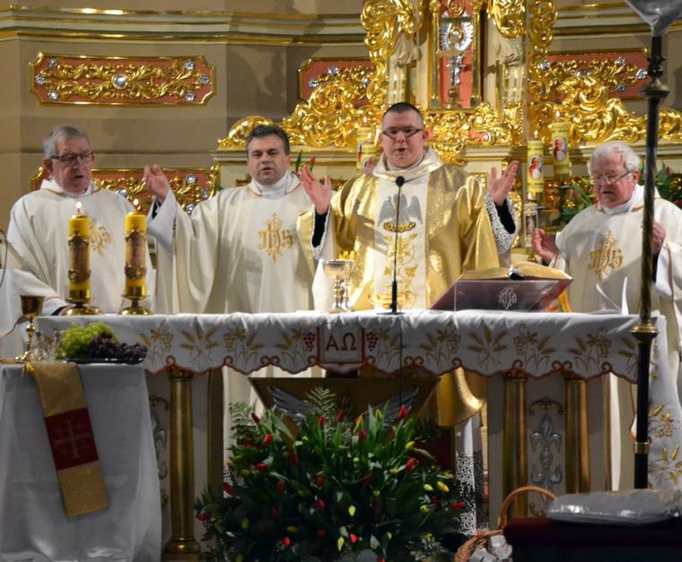 Wielki Czwartek, dzień ustanowienia Sakramentu Eucharystii i Kapłaństwa, przepełniony był dziękczynieniem. W tym dniu o godz. 18:30 zebraliśmy się w parafialnym wieczerniku, by dziękować za ustanowienie Eucharystii i Sakramentu Kapłaństwa, za szafarzy sakramentów, za tych, których Pan powołał i posłał, by prowadzili nas do Boga. Kapłani sprawujący posługę w mikstackiej parafii dziękowali za łaskę powołania oraz prosili o nowe, święte powołania do służby Bogu i ludziom. Mszy Wieczerzy Pańskiej przewodniczył ks. Marcin Walczak. Wraz z nim przy ołtarzu stanęli ks. kan. Krzysztof Ordziniak, ks. kan. Grzegorz Klapa i ks. kan. Zbigniew Mielcarek.