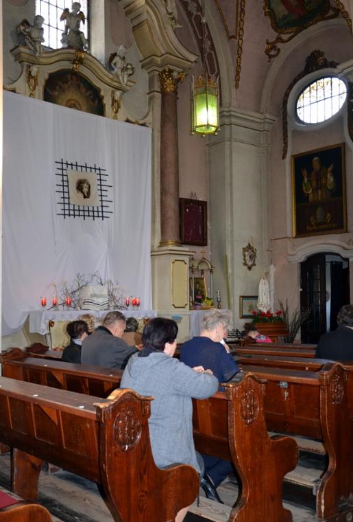 Usłyszane podczas tej liturgii słowa zapewne zachęciły nas do refleksji nad miejscem krzyża w życiu i dodały sił do zmagania się z naszymi krzyżami. Zapewne każdy z obecnych w kościele chce być godnym Chrystusa. Po modlitwie powszechnej nastąpiło uroczyste wprowadzenie i odsłonięcie krzyża oraz jego adoracja. Najpierw uczcili krzyż kapłani, siostry zakonne, ministranci. Po zakończonej liturgii przez całą noc i kolejny dzień taką okazję będą mieli wszyscy wierni. Dodajmy, że krzyż ten niedawno powrócił do kościoła po przeprowadzonych pracach renowacyjnych. Prezentuje się teraz pięknie.