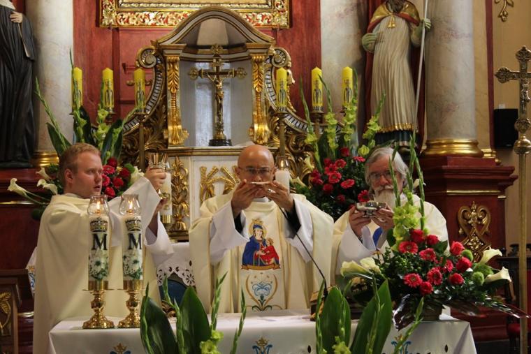 Do wielu z nich zapraszamy bliskich nam ludzi, szczególnie wtedy, gdy przeżywamy radość. Trudniej, gdy dotyka nas cierpienie, bo tu naprawdę trzeba nam przyjaciół wypróbowanych. Co roku takich wypróbowanych przyjaciół, my osoby niepełnosprawne, z różnych stron diecezji kaliskiej, spotykamy zawsze w sobotę przed ostatnią niedzielą sierpnia, kiedy wszystkie drogi prowadzą do Lutogniewa, a w sercu pojawia się pragnienie aby jeszcze raz spojrzeć w oczy Matki Bożej Pocieszenia. Pragnienie jest tym większe, bo wiemy, że Ona zawsze zauważa nasze problemy, może nam wiele wyprosić u Jezusa i co najważniejsze wzywa nas do tego, by iść za Nim, by trwać w Nim i wypełniać Jego przykazania. No to wyruszyliśmy w sobotni poranek sprzed kościoła św. Apostołów Piotra i Pawła w Krotoszynie w XVII Pielgrzymce osób niepełnosprawnych do Sanktuarium Matki Bożej Pocieszenia w Lutogniewie. Przewodnikiem tej wyjątkowej grupy był ks. kan. Grzegorz Jóźwicki proboszcz parafii p. w. św. Apostołów Piotra i Pawła w Krotoszynie, którego wspomagali ks. Michał Włodarski, ks. Piotr Dobrychłop oraz ks. Krzysztof Dończyk. W tych wyjątkowych rekolekcjach w drodze towarzyszyły nam także nasze rodziny, jak i przyjaciele, którzy często rezygnując czasem z ciekawszej formy spędzenia wolnego czasu, postanowili pomóc nam w spełnieniu naszego marzenia. Nasze pielgrzymowanie to przede wszystkim modlitwa, wyrażana również wspólnym śpiewem, która jest także byciem z drugim człowiekiem. Pielgrzymować to też unieść swoją słabość, niepełnosprawność, przyjąć pomoc drugiego człowieka. Pielgrzymować znaczy w końcu dojść do celu ~ ucieszyć się z wypełnionej obietnicy, z wyrażonej duchem i ciałem modlitwy. Na powitanie strudzonych, ale jakże szczęśliwych pielgrzymów, wyszedł ks. kan. Łukasz Żurawski, kustosz tutejszego Sanktuarium, wraz z klerykami; Karolem Raczakiem, Jędrzejem Grobelnym, Mikołajem Wawrzyniakiem aby jeszcze uroczyściej przy bijących dzwonach, wprowadzić nas przed obraz Matki Bożej Pocieszenia. Po powitaniu przez księdza kustosza, nie kryjącego swej radości z naszej obecności i przedstawieniu grup pielgrzymkowych oraz osób, które przybyły indywidualnie z terenu całej diecezji kaliskiej, w oczekiwaniu na najważniejsze spotkanie tego wyjątkowego dnia, po raz kolejny wyraziliśmy swoją radość we wspólnym śpiewaniu. O godzinie 10:00 uczestniczyliśmy w uroczystej Eucharystii, którą odprawił ks. kan. Grzegorz Jóźwicki. W koncelebrze stanęli: ks. Michał Włodarski, ks. Krzysztof Dończyk. Ks. kan. Grzegorz w słowie skierowanym do pielgrzymów, przypomniał nam o darze wdzięczności wobec osób które towarzyszą nam w naszym codziennym pielgrzymowaniu. Niestety, w zabieganiu, w poczuciu samowystarczalności i bezsprzecznych racji często zapominamy o swoim opiekunie, może trochę słabszym od nas, może chodzącym o kulach, jeżdżącym na wózku. Trzeba Bogu dziękować za Anioły, które do nas posyła, a chcące dawać nam oparcie, gdy jest ciężko, gdy trud codzienności zbyt mocno nas przygniata. Dziękować za każdego jednego człowieka, którego Bóg stawia w konkretnym celu na naszej drodze, tego znanego i nieznanego. Po zakończonej Eucharystii jeszcze raz swoje słowa skierował do nas ksiądz kustosz, który zaprosił nas do uczczenia relikwii świętej Siostry Faustyny Kowalskiej, wspólnego odmówienia Litanii do Matki Bożej Pocieszenia, a także do przejścia wokół ołtarza. Nasze radosne i pełne wzruszeń spotkanie zakończyliśmy w ogrodach proboszczowskich, gdzie w „Altance u Plebanka”, czekały na nas pyszne zupy oraz smażone kiełbaski, przygotowane przez tutejszych parafian oraz wiele innych wyjątkowych atrakcji.