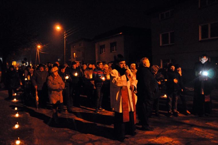 Oświetlona lampkami trasa drogi krzyżowej sprzyjała refleksji, modlitewnej zadumie, czuwaniu i podążaniu za krzyżem Jezusa.