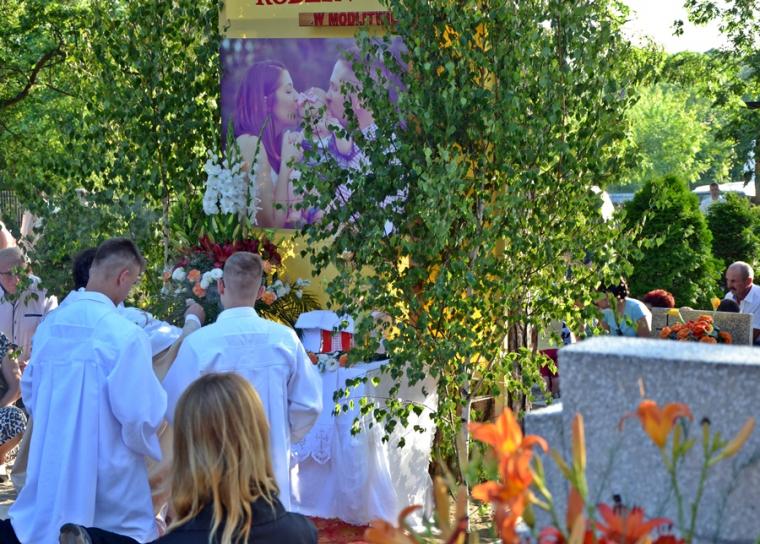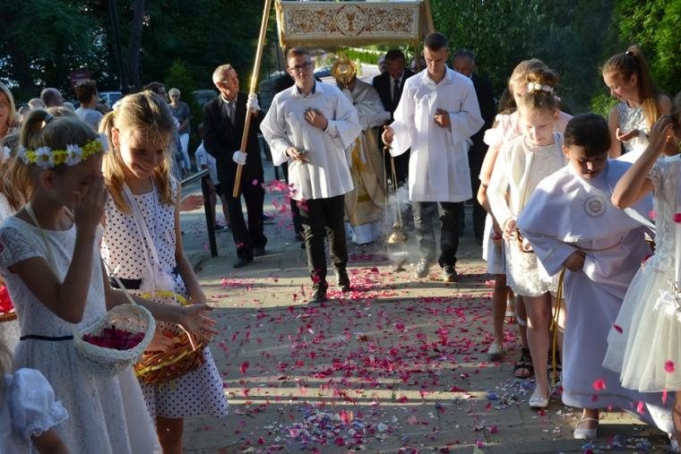 Po Mszy Świętej odbyło się wystawienie Najświętszego Sakramentu, odmówiliśmy Litanię do Serca Jezusowego. Następnie z Jezusem ukrytym pod postacią Chleba wyruszyliśmy alejkami cmentarnymi w procesji do czterech ołtarzu. Myślą przewodnią haseł, która znalazły się w tym roku na przygotowanych przez poszczególne rejony parafii była NIEDZIELA. Hasła skłaniały wiernych do spojrzenia na niedzielę w następujących aspektach: Niedziela dniem Kościoła, Niedziela dniem rodziny, Niedziela dniem wiary, Niedziela dniem człowieka. Procesję zakończyło błogosławieństwo Najświętszym Sakramentem na cztery strony świata. Następnie odbyło się poświęcenie wianków z ziół i kwiatów. To wyraz naszej wiary i zaufania Bogu. Przyniesione zostały pierwociny pól i łąk, by Bóg nam błogosławił, by nikomu nie zabrakło chleba powszedniego, bo tego będącego pokarmem dającym życie wieczne nigdy nie zabraknie… Obyśmy tylko chcieli się nim karmić… Zadziwiająca jest siła wiary i tradycji w naszej wspólnocie.