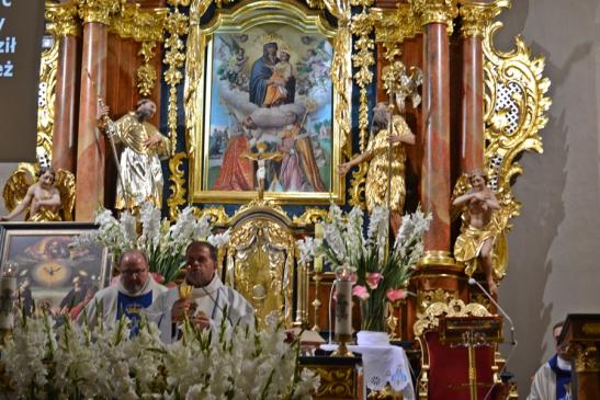 Mszy św. sprawowanej o godz. 18:00 w sanktuarium Matki Bożej przewodniczył ks. Roman Gajewski z Grodziska Wielkopolskiego. Współcelebransami byli ks. Piotr Karasek i ks. kan. Adam Kosmała. Ks. Krzysztof Lipiński, kapelan szpitali w ostrowie Wielkopolskim posługiwał wiernym w konfesjonale.