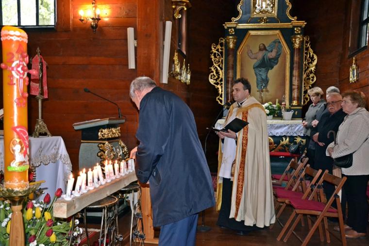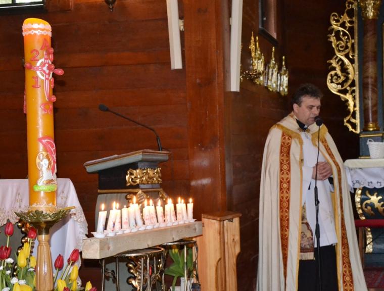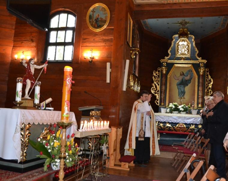 W Niedzielę Miłosierdzia Bożego w parafii zostały odprawione dwie Msze Święte z prośbą o łaski potrzebne dla jego czcicieli. Pierwsza sprawowana była przez ks. kan. Krzysztofa Ordziniaka o godz. 11:00 w kościele farnym. Jest tradycją w naszej parafii, że uczestniczą w niej dzieci. Podczas homilii ks. kanonik nawiązał do słów Ewangelii i zachęcał, zarówno dzieci jak i dorosłych, do troski o rozwój swojej wiary. Nie mogło zabraknąć nawiązania do obchodzonej Niedzieli Miłosierdzia Bożego. Dzieci otrzymały obrazki z Jezusem Miłosiernym na odwrocie których, znajdowały się słowa modlitwy Koronki do Miłosierdzia Bożego. Ich tekst przydał się najmłodszym parafianom, gdyż po zakończonej Eucharystii przy wystawionym Najświętszym Sakramencie odmówiona została właśnie Koronka i Litania do Miłosierdzia Bożego. Trudno wyobrazić sobie ten dzień bez modlitwy w Godzinie Miłosierdzia Bożego. Tę szczególną godzinę część parafian przeżywała w Diecezjalnym Sanktuarium Świętego Rocha. Tu ks. kan. Krzysztof poprowadził Koronkę do Miłosierdzia Bożego. Zanim rozpoczęliśmy modlitwę kapłan przywołał fragmenty z Dzienniczka s. Faustyny. Były wśród nich następujące słowa Jezusa: „Pragnę, aby święto Miłosierdzia, było ucieczką i schronieniem dla wszystkich dusz, a szczególnie dla biednych grzeszników. W dniu tym otwarte są wnętrzności miłosierdzia Mego, wylewam całe morze łask na dusze, które się zbliżą do źródła miłosierdzia Mojego. Która dusza przystąpi do spowiedzi i Komunii świętej, dostąpi zupełnego odpuszczenia win i kar”( 699). Czy można nie skorzystać z tego szczególnego czasu łaski? W czasie Koronki prosiliśmy Pana Jezusa o miłosierdzie dla zmarłych spoczywających na otaczającym Diecezjalne Sanktuarium Świętego Rocha cmentarzu, a także za zmarłych polecanych w wypominkach rocznych. Ich nazwiska wyczytywał ks. kanonik pomiędzy poszczególnymi częściami modlitwy. Po Koronce do Miłosierdzia Bożego w sanktuarium odprawione zostało nabożeństwo Drogi Światła. Nabożeństwo to chyba już na stałe wpisało się do scenariusza obchodów Święta Miłosierdzia Bożego w naszej parafii. Niesie ze sobą ono tyle nadziei. Było okazją do przeżycia 14 spotkań ze Zmartwychwstałym Panem, ale i czasem refleksji nad tym, za co powinniśmy przeprosić Jezusa. Przy rozważaniu poszczególnych spotkań od paschału odpalane były kolejne świeczki. Tuż przed błogosławieństwem zapłonęła czternasta. Po nabożeństwie Drogi Światła w sanktuarium odprawiona została kolejna Msza Święta w intencji czcicieli Miłosierdzia Bożego z Mikstatu i Komorowa.